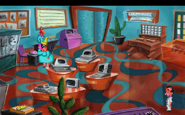The Hard Disk Café really wears its computer-based influences on its sleeve. There’s nothing to do out here, besides listen to the catchy music, unless Larry feels like wandering over to one of this nice plants, and . . . uh . . .